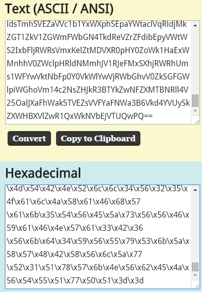 A nice ASCII title and my expected password prompt. But what’s this you say? Loads of ostensibly trivial hex? (once again there’s lots more above but I’ve cropped the picture). Ok so my leads so far are random hex, or the random hex.
