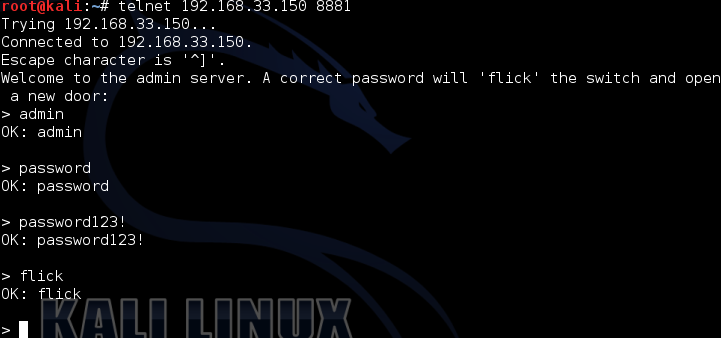 So I’m looking to flick a switch and open a door. As you can see anything I pass is returned to me with ‘OK’ which clearly is not. Poirot here is already beginning to lose hope as this and SSH (which of course I don’t have any passwords for) are seemingly the only 2 things I have to go on….
